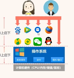 用户通过操作系统实现对硬件资源的访问,对软件的控制