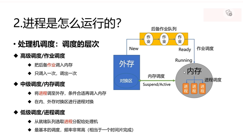 而现在的 cpu 是多核的,就可以在同一时间段内处理多个进程 - 共享