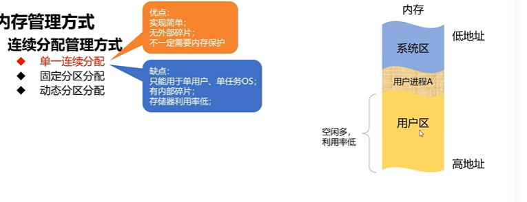 只适用于单用户系统,比如说单片机,单用户系统,就是只有一个用户,那么这个用户就可以独占所有的内存,这样就不会出现内存碎片的问题了