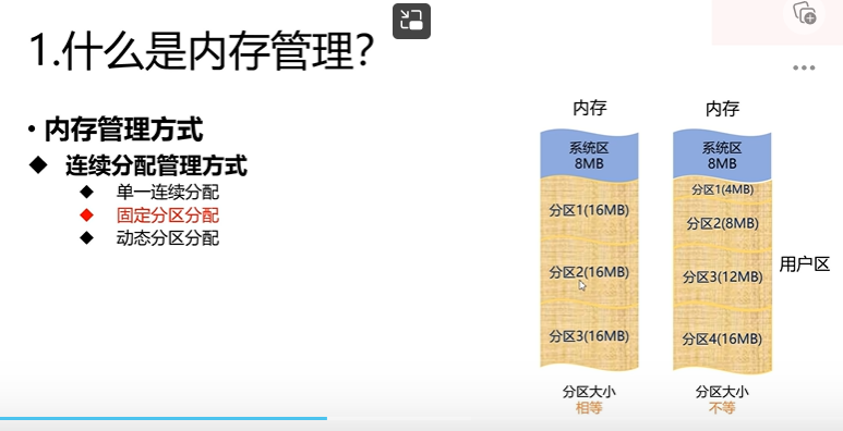 就是把内存预先划分好的,每一个分区都是固定大小的,然后每一个分区都可以分配给一个进程,这样的话,就不会产生外部碎片了