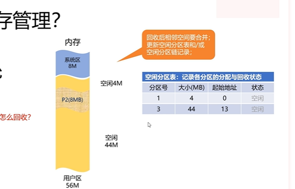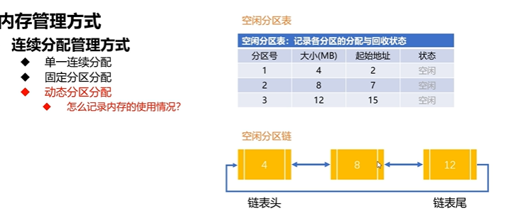 用了一个空闲分区表,和空闲分区链,记录各个分区的分配和回收的情况