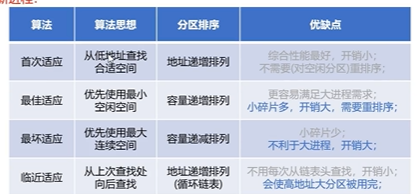 这里有好多个算法,首次适应(first fit),最佳适应,最坏适应,临近适应