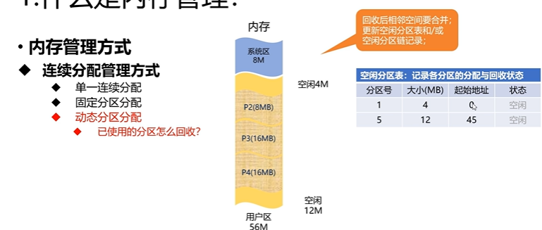 当我们需要回收的空间前后有空闲分区的时候,就需要合并空闲分区
