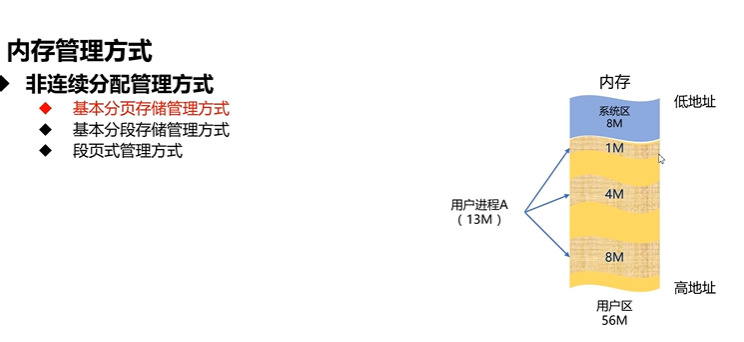 非连续分配指的是,一个进程在内存的空间不是连续的,而是被分成很多块