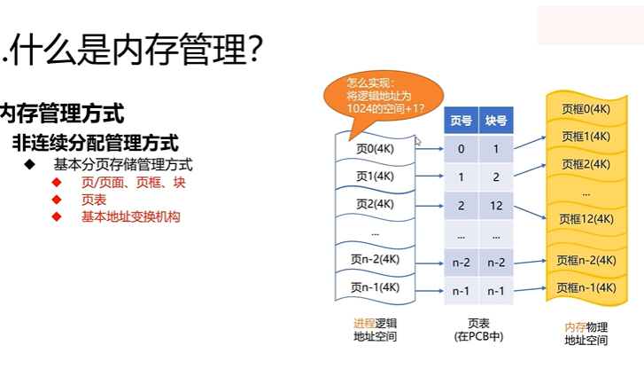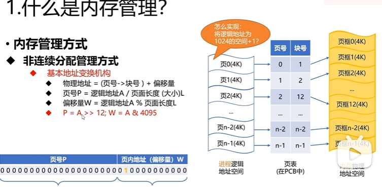 然后页是逻辑地址,页框是物理地址,页号和页框号是通过页表来映射的