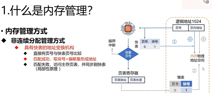 如果没有快表的话,我们已知一个逻辑地址,要先去查页表,然后知道页号以后再根据偏移量算页内地址,然后又访问了一次内存