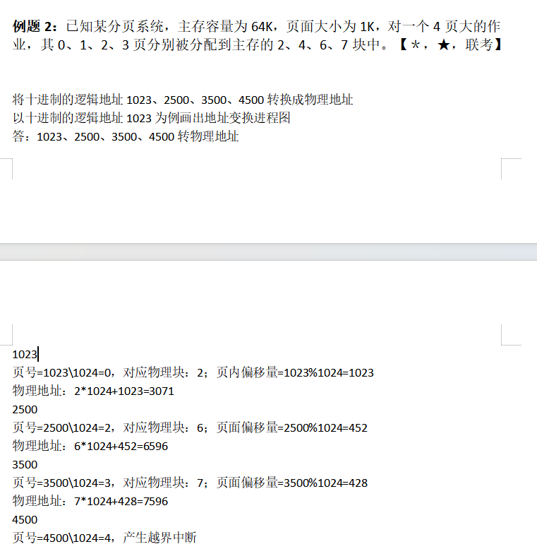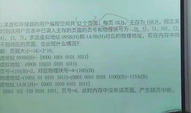 先看是在几 k 中划分,然后将逻辑地址转换成 2 进制,再划,再去找物理块,最后直接把划出来的这几位用物理地址的 2 进制换掉,计算要小心