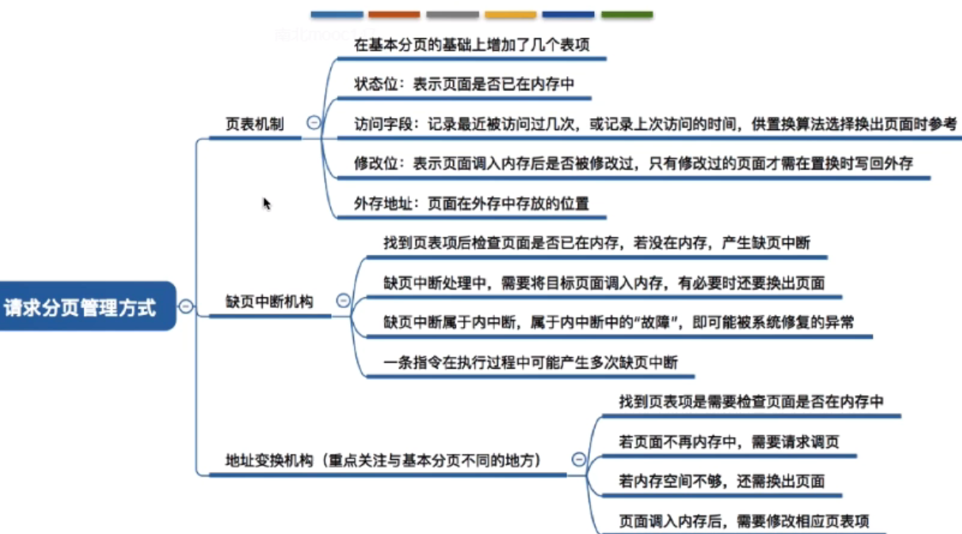 缺页中断机构,找到页表项以后检查是否已经在内存,没有在内存就产生缺页中断,缺页中断处理中,要将目标页面调用内存,重新链接装入,