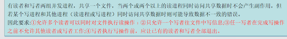 读的时候不能写,写的时候不能读,读和写直接是互斥的,但是读和读之间没有互斥关系,写和写有互斥关系,只能同时存在一个写者