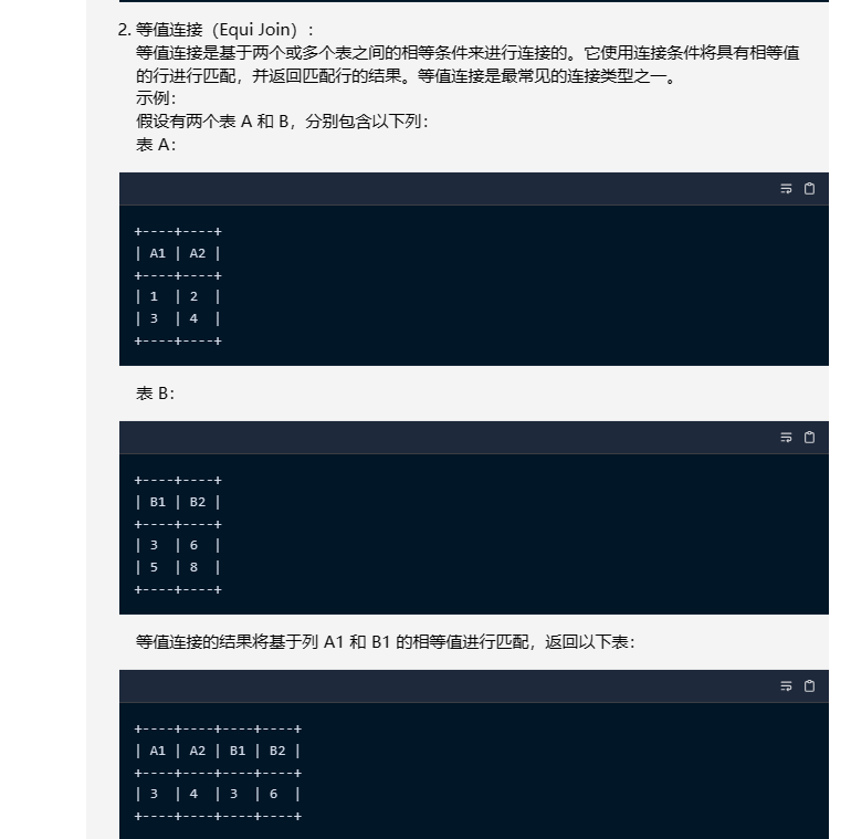 等值连接就是直接一行一行看,如果有相同的行,就把他们并起来