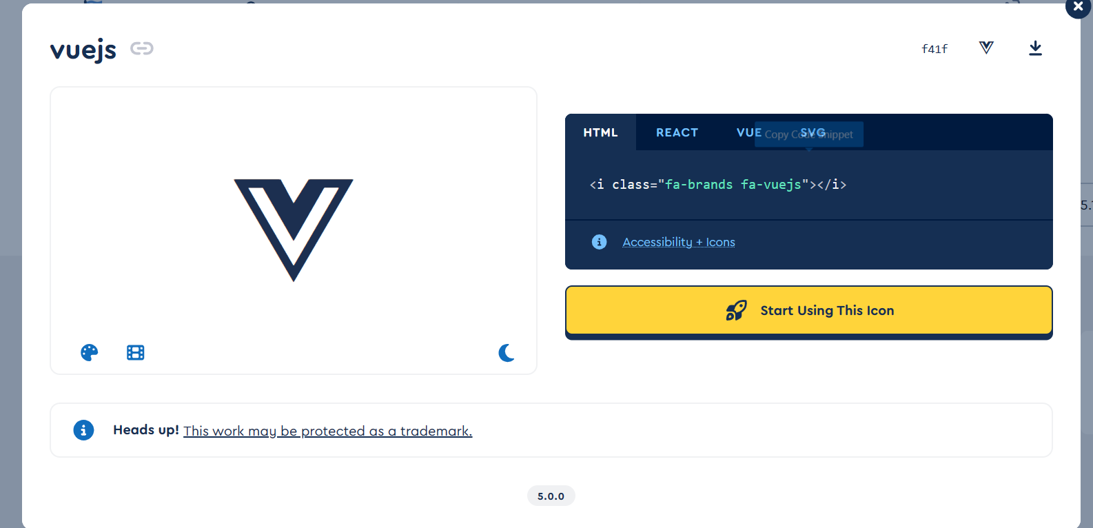 比如这个 VUE 的图标,就在 icon 字段中输入 fa-brands fa-vuejs